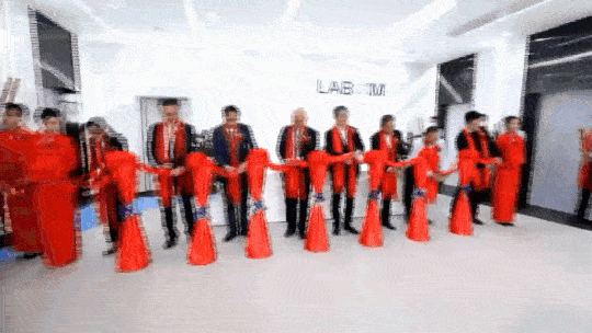 樹雄心創基業為藍勃添色,立壯志寫春秋與日月爭輝,嬌艷花籃、鮮紅地毯喜迎四方來賓,門迎百福財無邊,喬遷大吉。